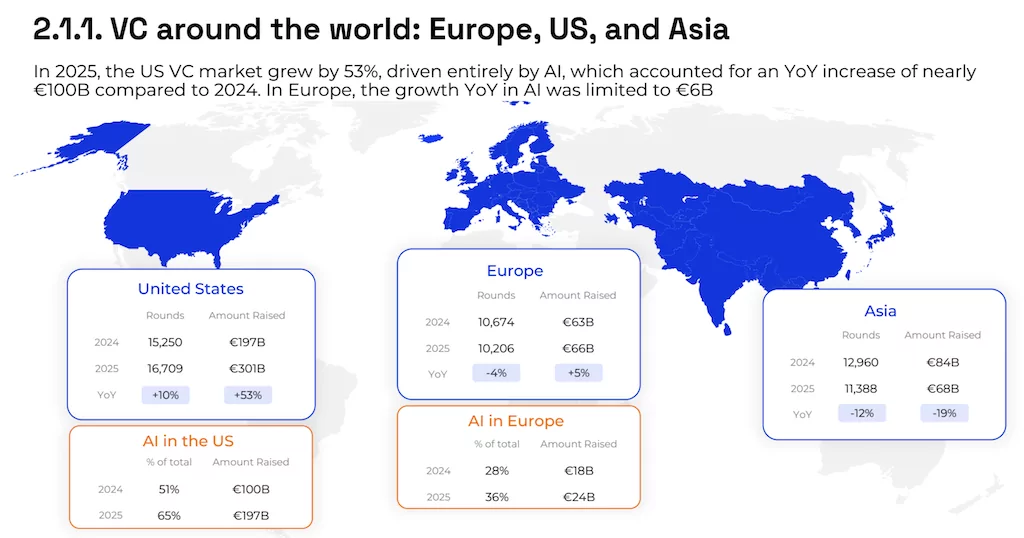 Fundraising by European VC funds fell to a record low, reflecting smaller fund sizes, fewer large closings, a growing role for emerging managers and a significant geographical rebalancing, with the DACH region overtaking the UK as the main hub for capital raised by funds.