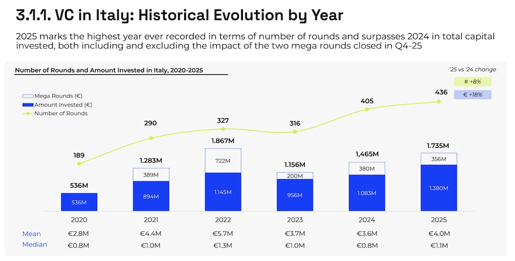 Venture capital in Italy: €1.735 billion invested in 2025