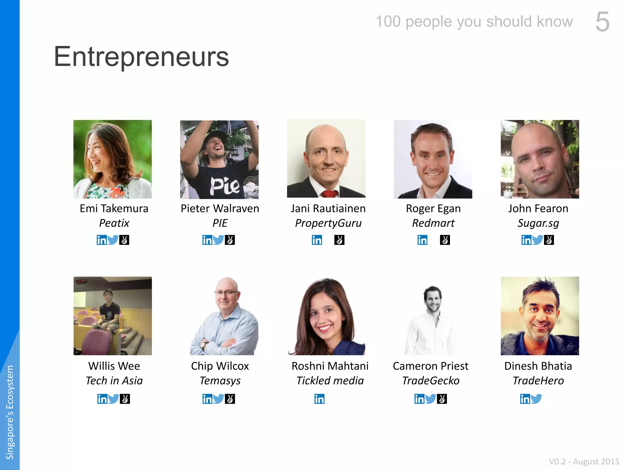 Singapore rappresenta in sé un piccolo mondo, ma è anche il crocevia di un mercato da 600 milioni di persone, ed è pertanto la piattaforma asiatica per il lancio di startup US ed Europee. Ha una popolazione di 5,5 milioni di abitanti, digitalmente molto attivi: 7 milioni di smartphone, 1 milione di utenti Linkedin, 3,5 Facebook, 4,5 utenti internet, 3 milioni di online shopper. Nel 2015 è salita dal 17 al 10 posto nella classifica degli “startup ecosystems in the world”, conta oltre 1000 startup (tra cui due unicorni e 12 centauri), è considerato il posto al mondo nel quale è più semplice avviare un business. La fotografia dell’ecosistema startup di Singapore e di tutti suoi protagonisti è nelle 100 slide qui di seguito, realizzate da Arnaud Bonzom, Special Projects @ 500 Startups (San Francisco).